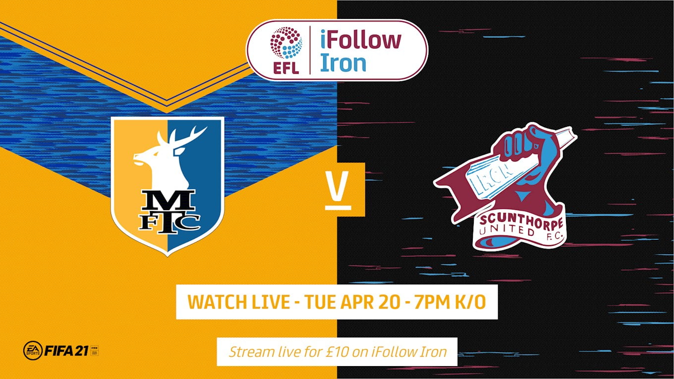 The Iron visit Mansfield Town in Sky Bet League Two on Tuesday, April 20th (7pm kick-off), and though the game will be played behind-closed-doors due to the COVID-19 pandemic, supporters are able to stream live on iFollow Iron.