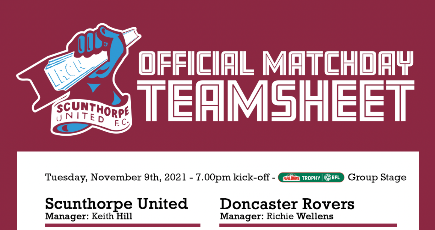 Download and print at home teamsheet: Iron v Doncaster Rovers (Papa John's Trophy)
